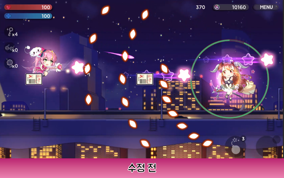 • 기존: 아카데미에서 탈출한 컨셉으로 도시의 밤하늘 컨셉의 스테이지에서 진행.